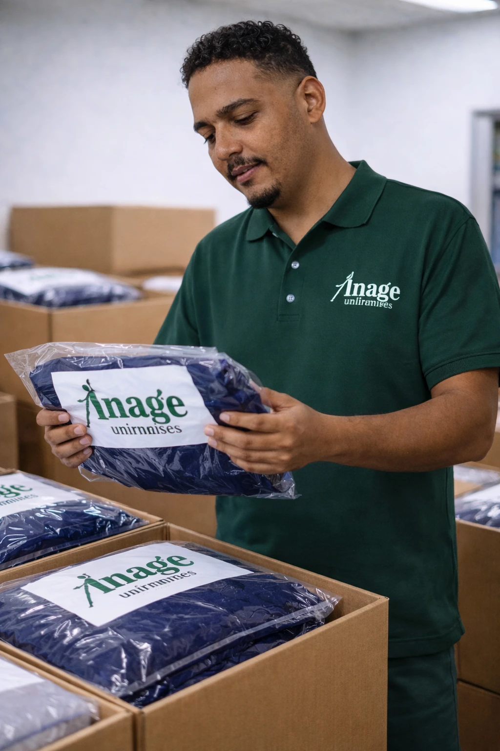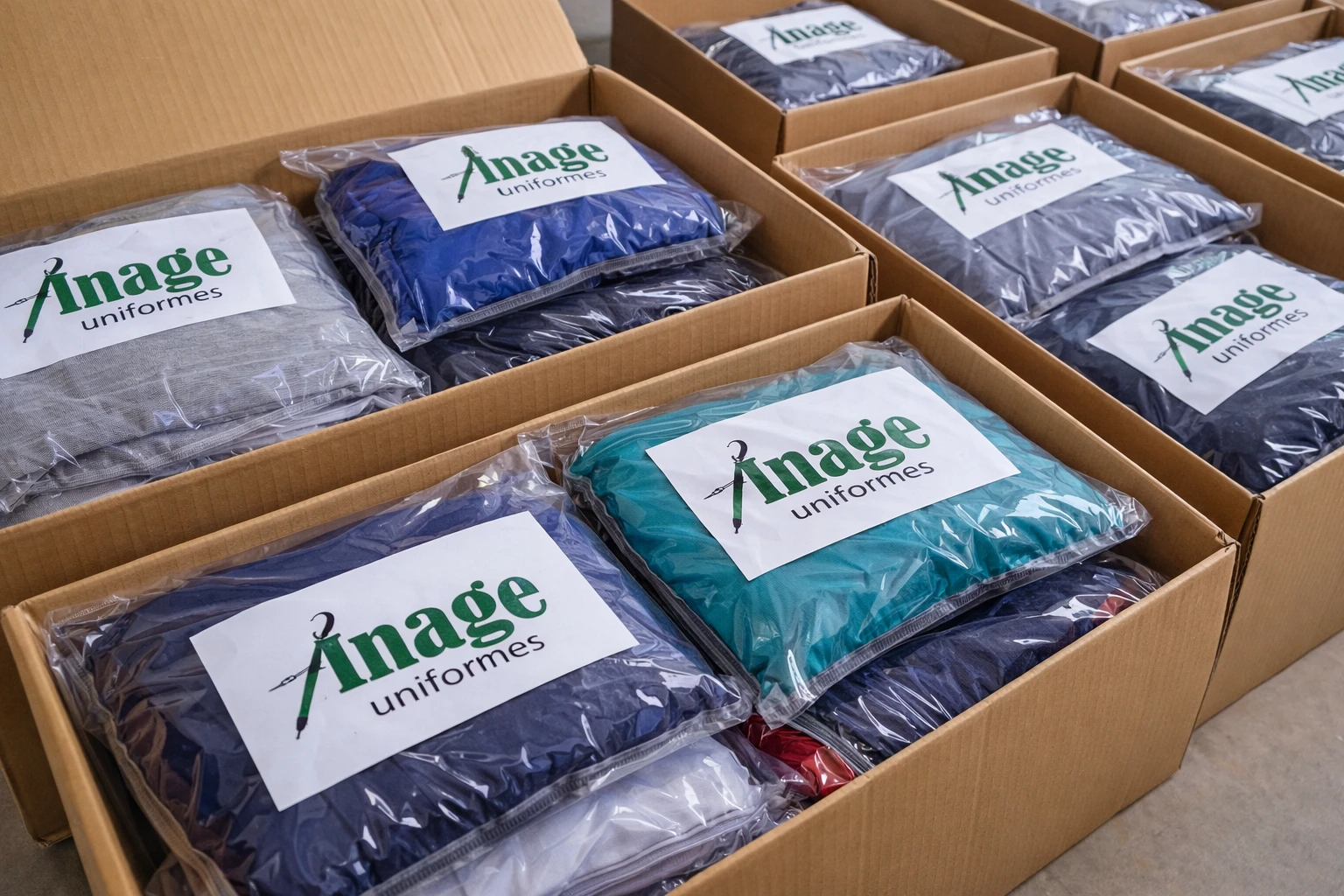 Preparamos cada pedido con cuidado, protegiendo tus uniformes para una entrega impecable.